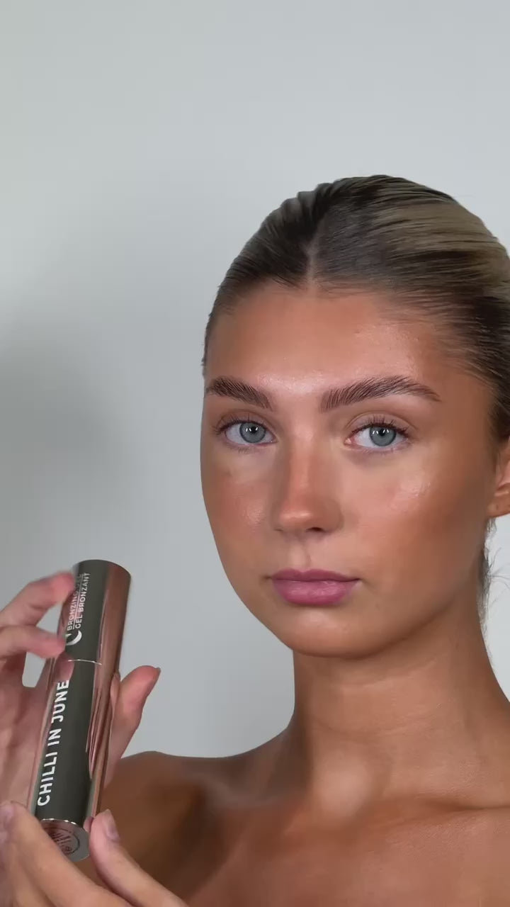 The Chilli in June Bronzing Gel is a lightweight, skin-enhancing complexion booster that delivers a sheer wash of warmth and radiance. Designed to melt seamlessly into the skin, this weightless gel blends effortlessly, leaving behind a natural-looking bronzed glow with a dewy finish.