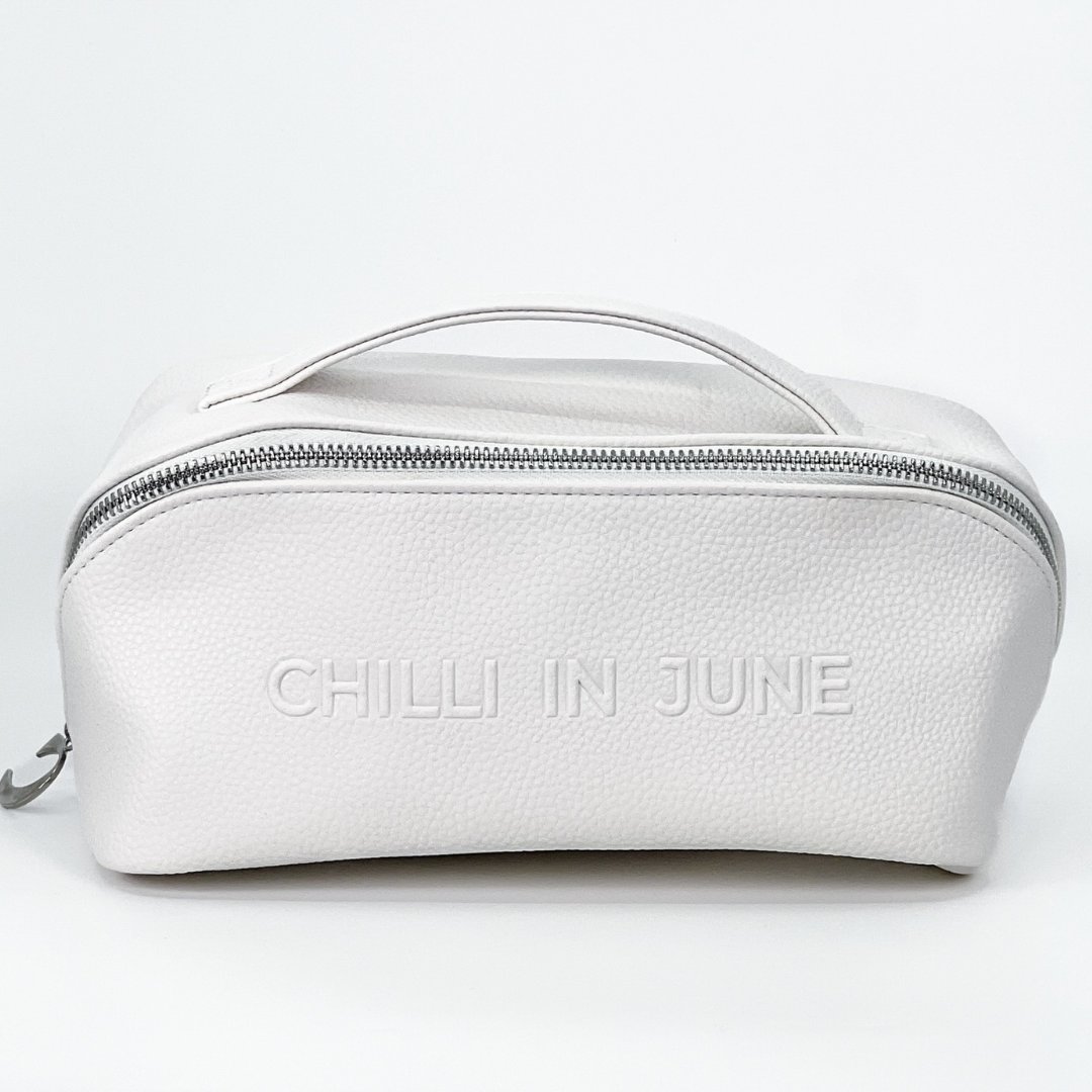 Crafted in soft vegan leather with a subtle grain and finished in our signature neutral tone. Inside, you’ll find elastic pockets for your brushes, a center divider with zip storage, and a silky lining that wipes clean in seconds.